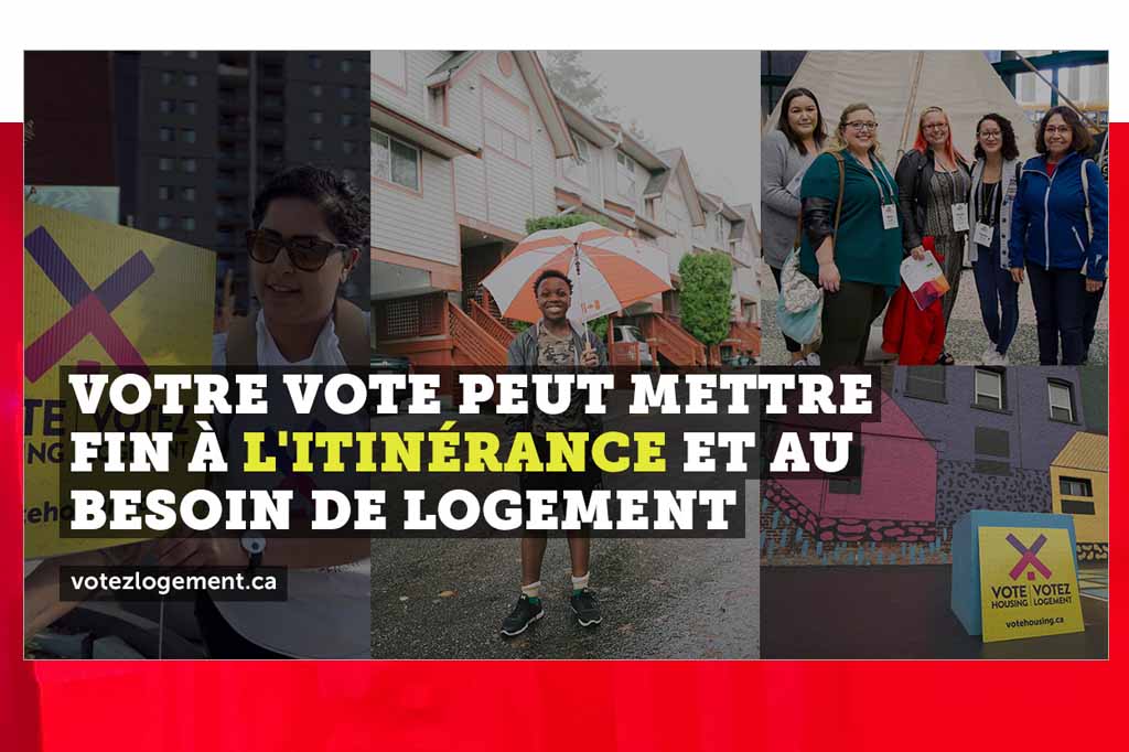 Adaptation et traduction vers le français de textes et de narrations pour la campagne Votez logement visant à inciter les partis politiques fédéraux à s’engager à prendre des mesures pour lutter contre l’itinérance et résoudre la crise du logement.